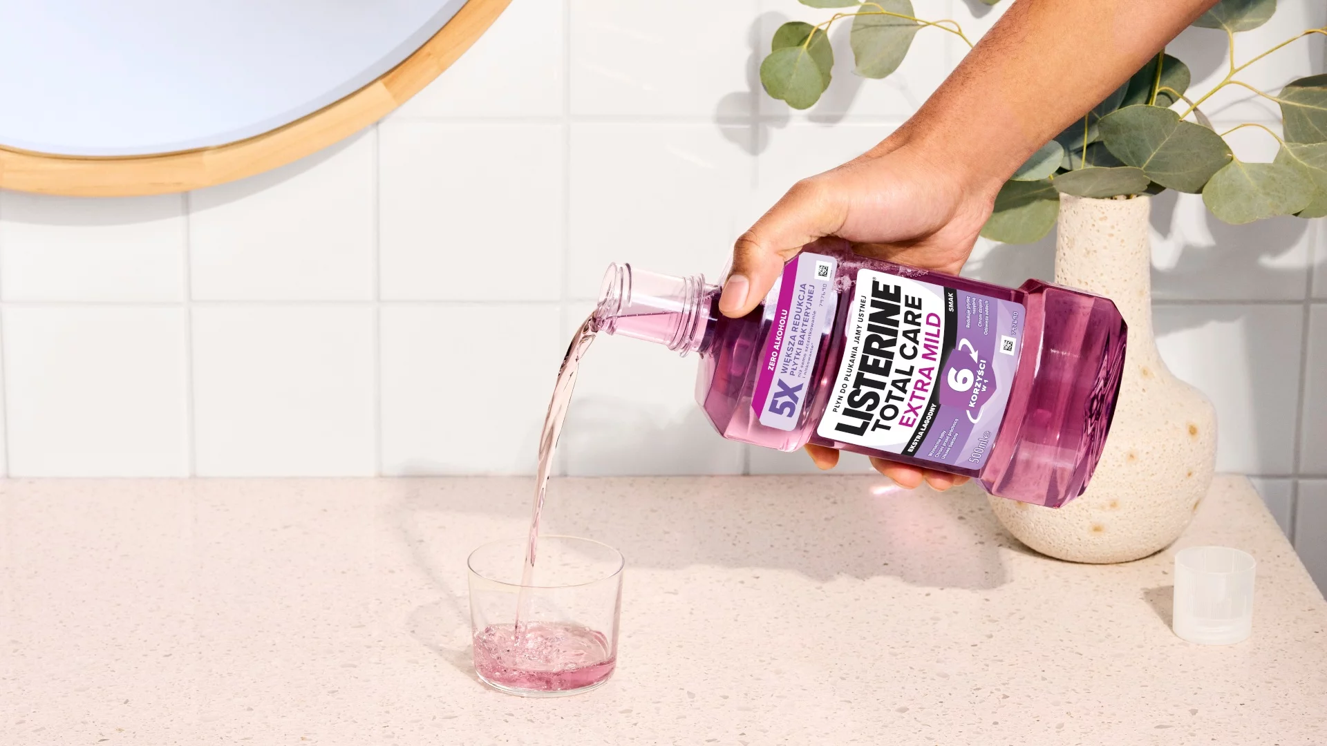 Wprowadzenie zdrowego nawyku płukania jamy ustnej dwa razy dziennie to prosty krok do zdrowia, prowadząc do mocnych zębów, zdrowych dziąseł i świeżego oddechu aż do 24 godzin!